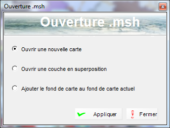 - Menu Fichier -> Ouvrir un fond de carte (.msh)